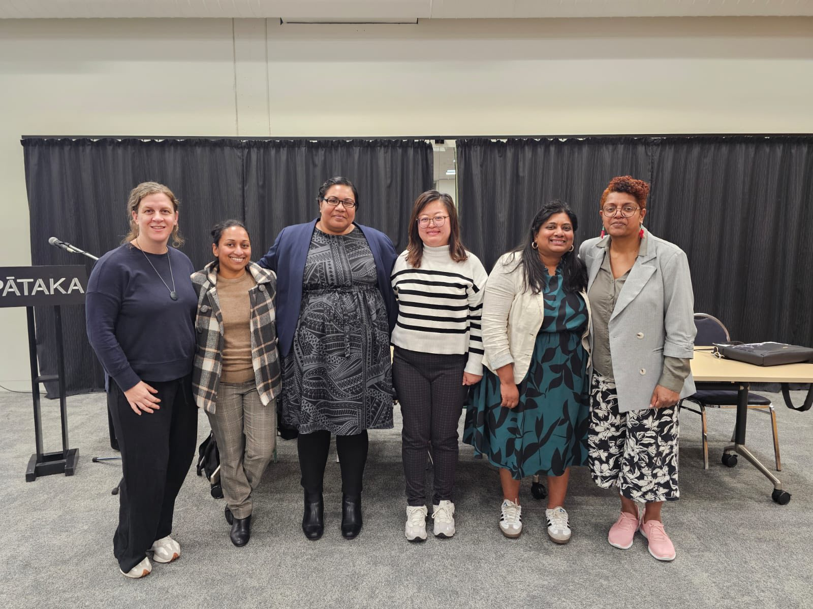 (Porirua Multicultural Council President Rowena Lopesi (third from left) pictured with new and outgoing members of the Council Board.)
